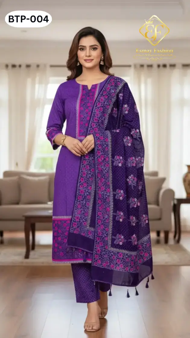 Hand Work Three Piece – HMTP- 1-6 ( Unstitch )