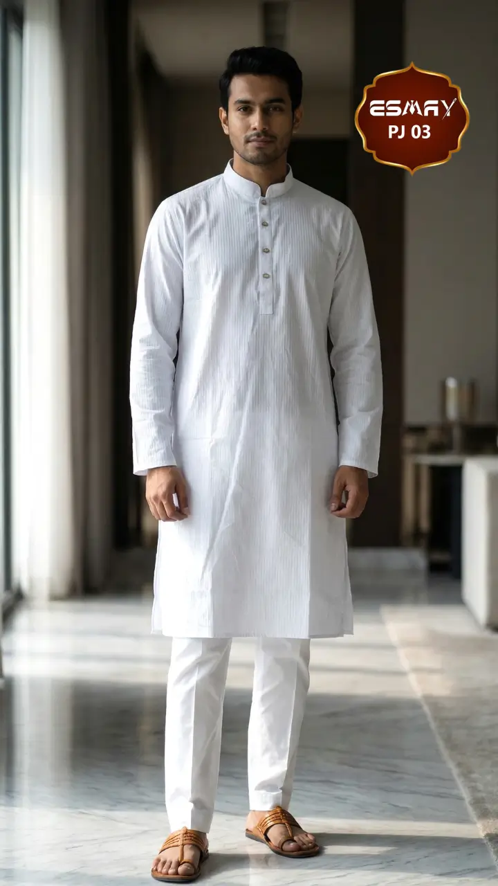 premium panjabi Bangladesh, white panjabi for men, Eid panjabi 2026, luxury cotton panjabi, designer panjabi BD, ESMAY panjabi, textured cotton panjabi, panjabi for Jummah, wedding panjabi for men