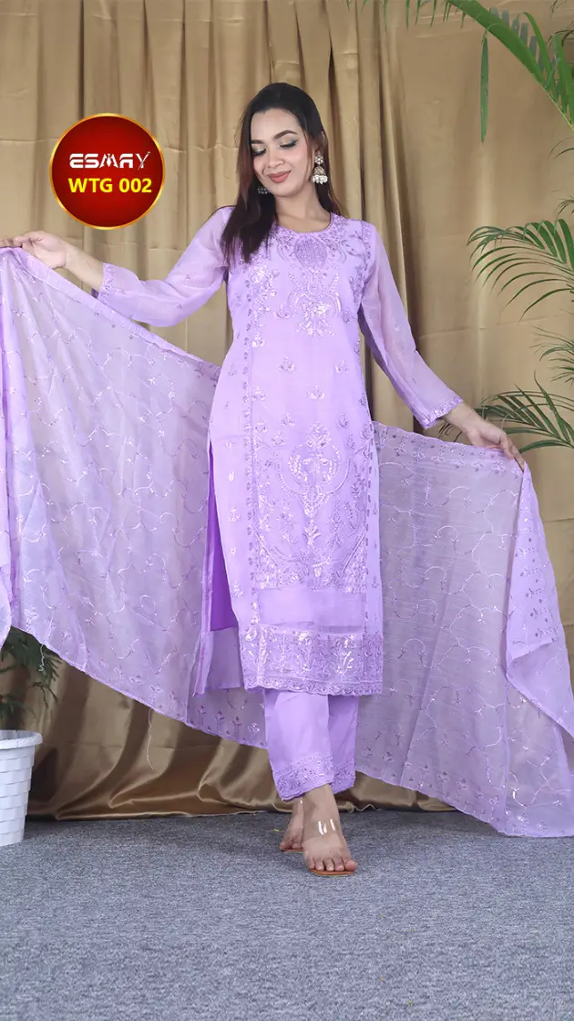 আপনি যদি এমন একটি আউটফিট খুঁজে থাকেন যা একই সাথে এলিগেন্ট, ট্রেন্ডি এবং কমফোর্টেবল—তাহলে Georgette Three Piece Stitch আপনার জন্য সেরা অপশন 💕।